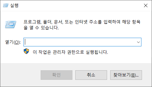 1. Win + R 하면 바로 아래처럼 실행창이 나타난다.